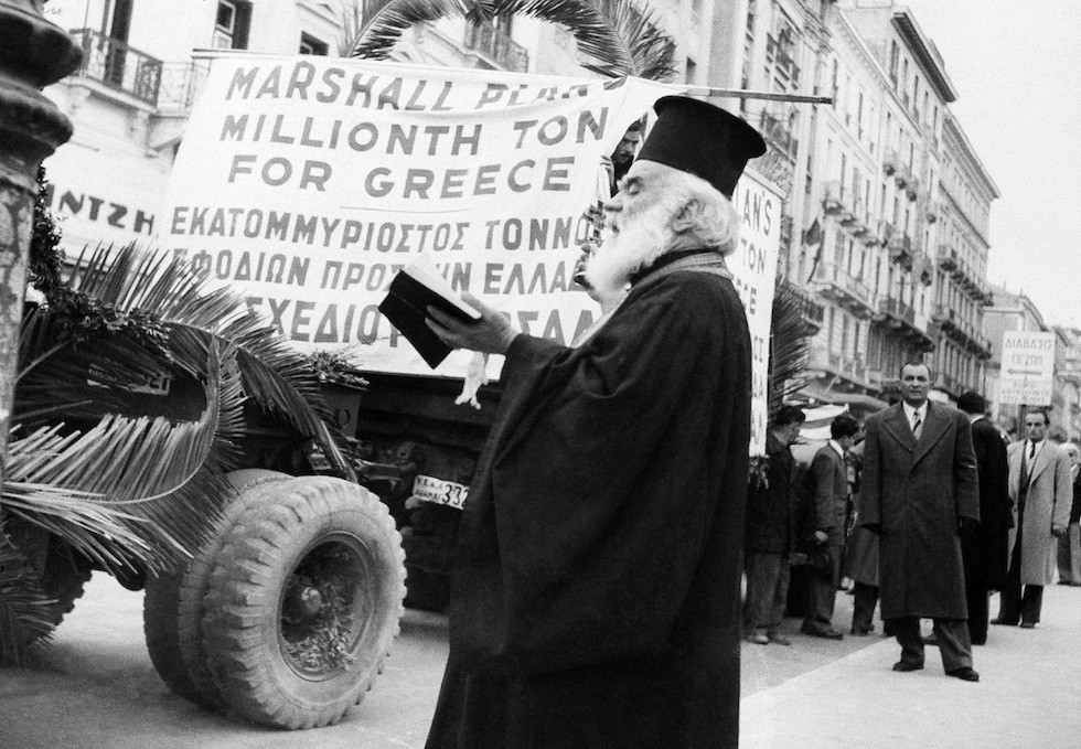 Il 2 aprile del 1948 il Congresso degli Stati Uniti approva il piano Marshall, così denominato per via del nome del segretario di Stato americano che lo ha ispirato. Si tratta di un programma di ricostruzione economica che gli Stati Uniti avrebbero finanziato, ponendosi in continuità con gli aiuti forniti sin dal 1943 alle popolazioni colpite dalla guerra. Contro l`attuazione del Piano alcuni movimenti politici e sindacali, in Europa, organizzano manifestazioni di protesta. L`America viene accusata di voler colonizzare l`Europa.